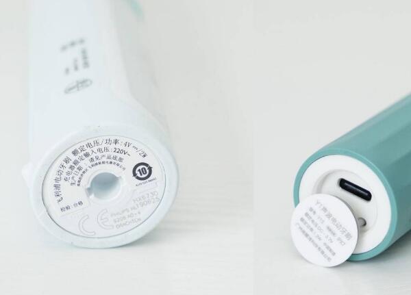 正品飛利浦電動(dòng)牙刷刷頭是整齊的激光鐳射蝕上去的,字體工整清晰;仿品刷頭一般都是鋼印。