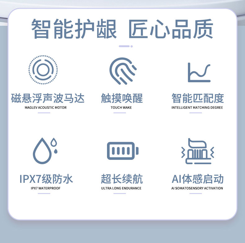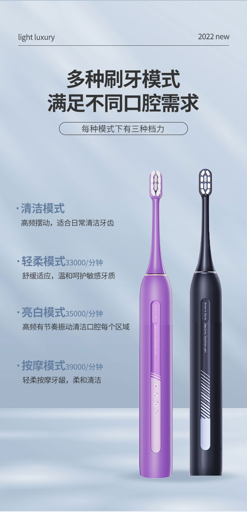 聲波口潔力新一代電動牙刷–刷博士【聲波感應(yīng)智能電動牙刷】是一款新研發(fā)創(chuàng)新的感應(yīng)式聲波電動牙刷,可實現(xiàn)“入口即開,離口即?!?,告別按鍵的感應(yīng)黑科技。這款【聲波感應(yīng)電動牙刷】多種刷牙模式且每種模式下均有3檔力度調(diào)節(jié),可滿足不同口腔需求;USB直充,方便易攜帶,出差旅行收納省心;iPX7級防水全身可水下沖洗,沐浴使用也不怕,隨意浸泡,也滴水不入,給你十足安全感!